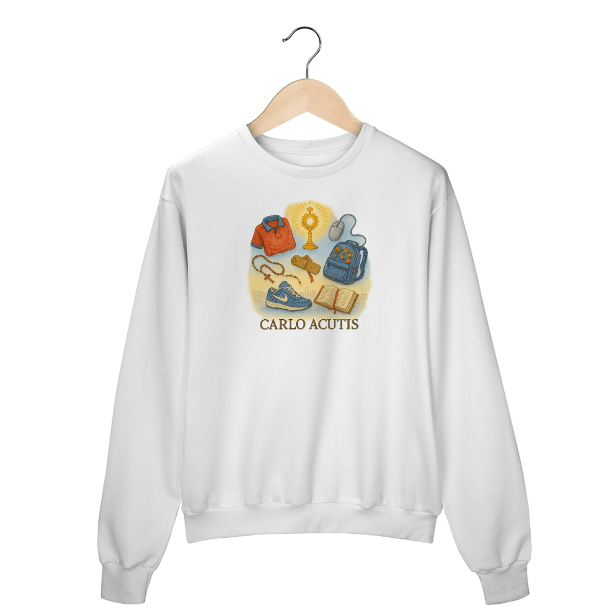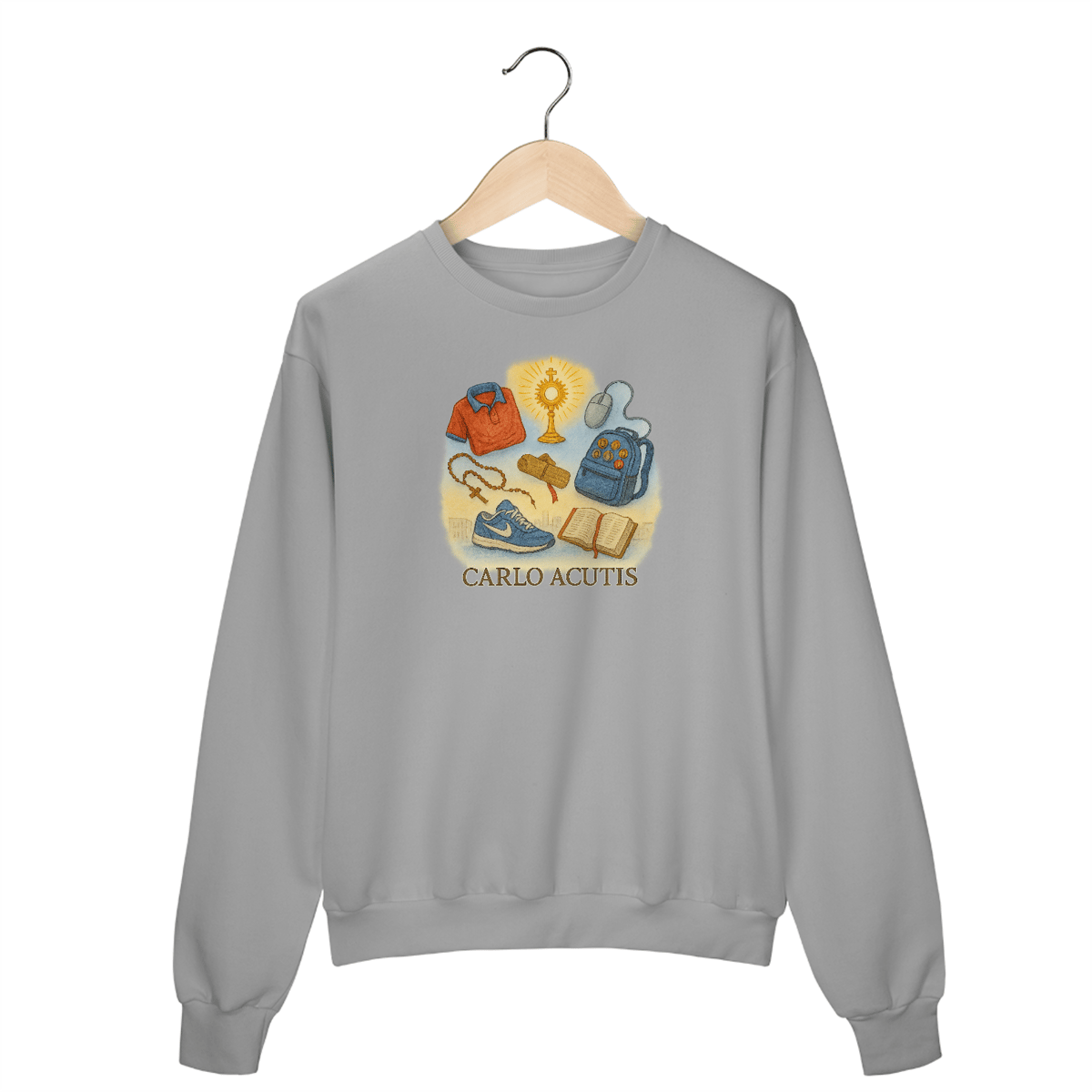 O moletom Santa Juventude foi feito para quem deseja carregar sua fé de forma viva e corajosa no dia a dia, inspirado pelo exemplo do Beato Carlo Acutis.