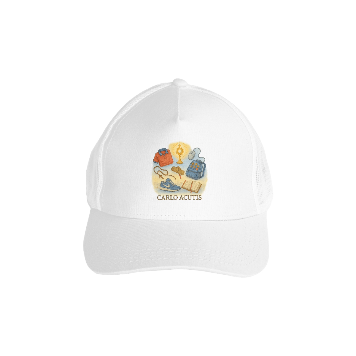 Inspirado no jovem beato que soube usar a internet para evangelizar, esse boné leva a mensagem de fé com estilo, atitude e propósito. Ideal para quem deseja evangelizar mesmo nos detalhes do dia a dia.